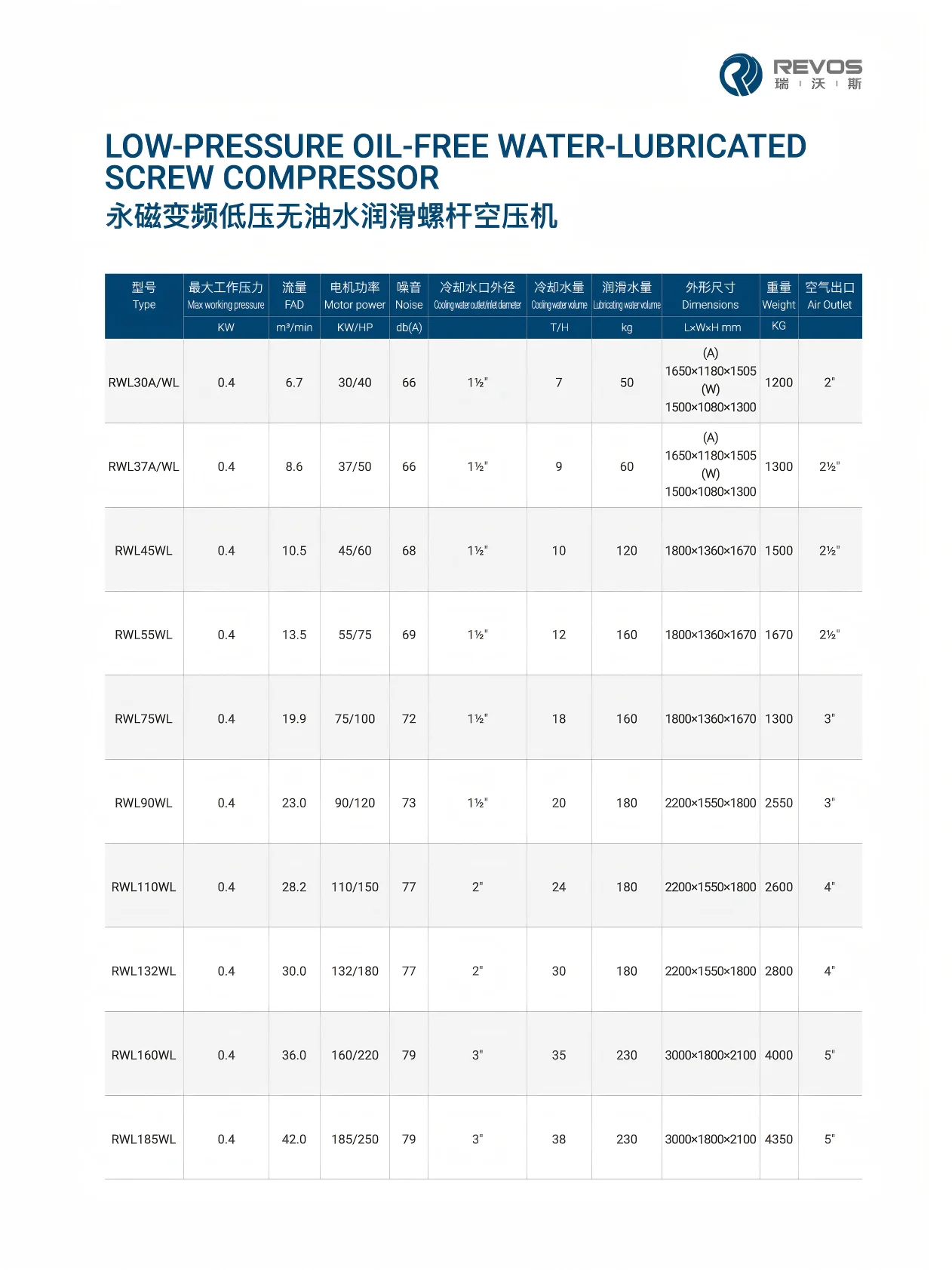 (RWL160WL) 160KW Oil-Free Water-Lubricated Screw Air Compressor