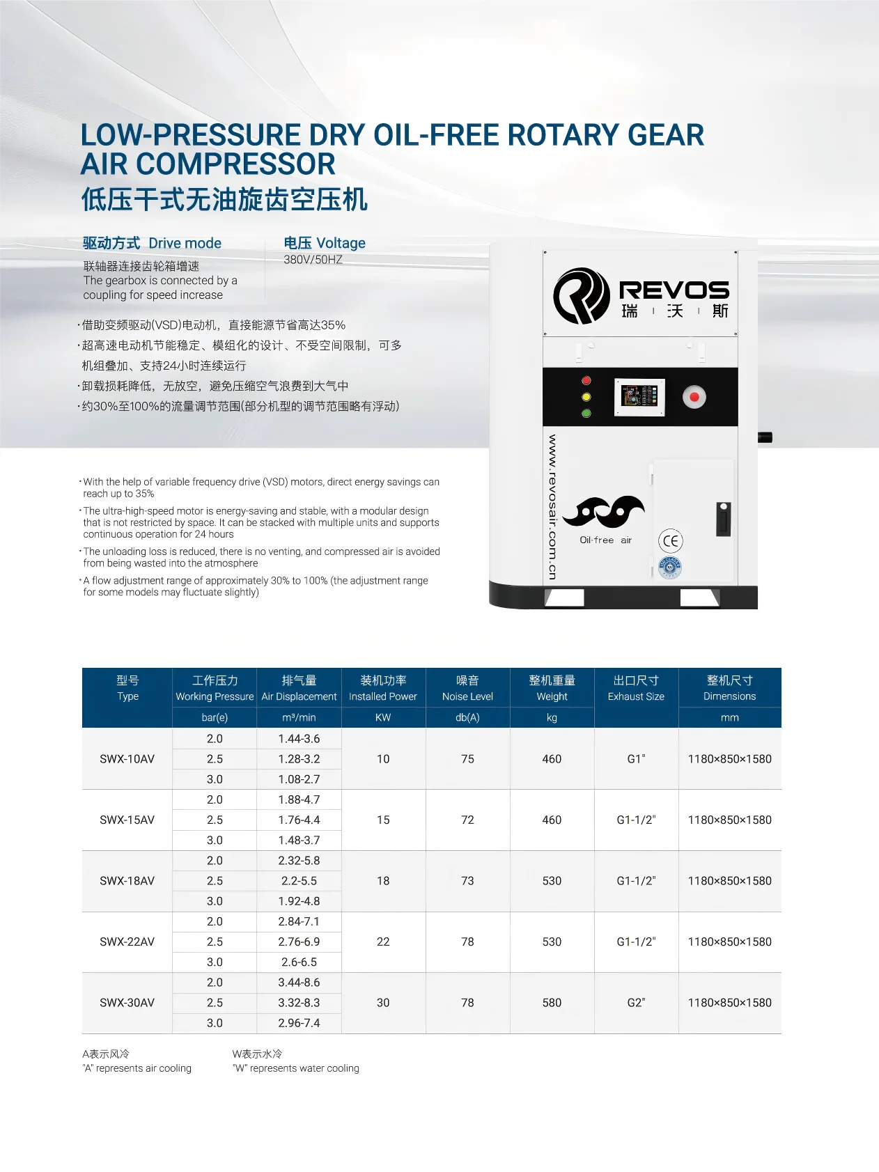SWX-15AV 15KW Low-Pressure Dry Oil-Free Rotary Lobe Air Compressor